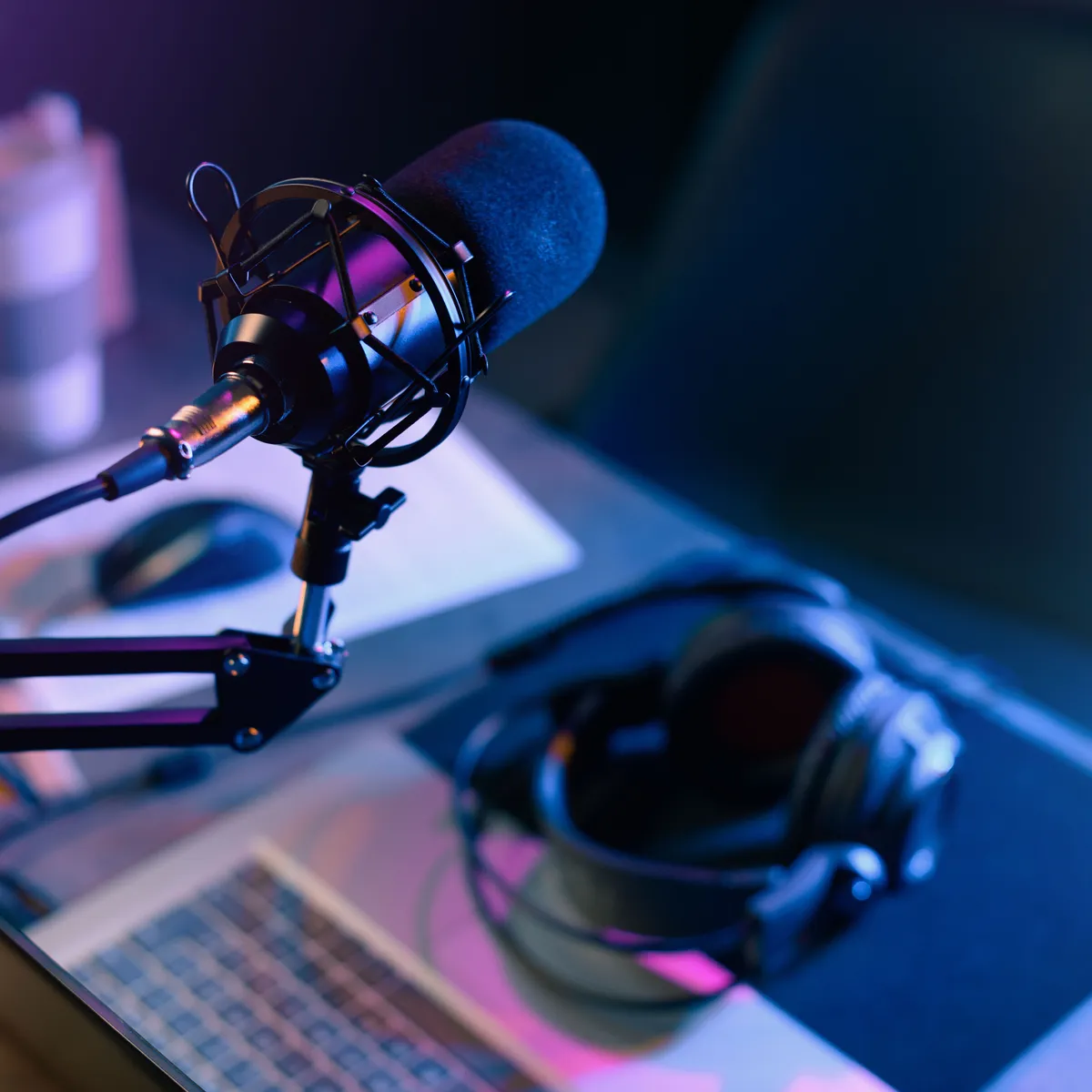 A two-metre broadcast desk that seats up to three speakers, three cameras with independent angles, three microphones, a teleprompter, a video production suite with live chat management, and a podcast mixer.